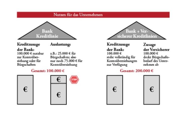 Denn die Bereitstellung des Bürgschaftsvolumens durch einen Versicherer ist liquiditätsneutral und schränkt Ihre Kontokorrentlinien nicht ein – der Handlungsspielraum des Unternehmens bleibt erhalten.
